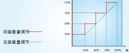 通过高精度的容量控制阀,密切追踪机组的负荷变化,调节冷媒量。其容量方式可采用单机头四级控制(25%~100%)、双机头八级控制(12.5%~100%)或无级控制,确保能耗损失最小化,为用户节省运行费用。
