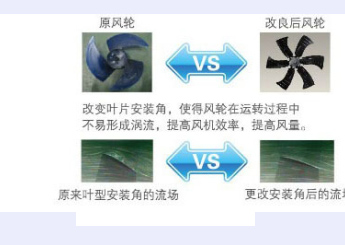 机组选用低转速、大扭矩风扇,叶片经过静平衡和动平衡试验,在保证低噪音的同时获得更大风量。此外,其风道经过优化设计,风速分布均匀,有利于化霜,并能加强换热器的效率和效果。