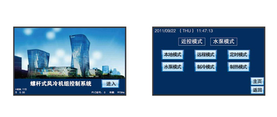 采用微控制器控制,具有故障诊断、防冻监测等多项自动控制功能,确保机组高效运转,操作方便。机组自带RS485通讯接口,多台机组可以实行联网控制;机组可由上位计算机控制。各台机组的运行可由上位计算机根据负荷需求及运转时间来控制其开停。