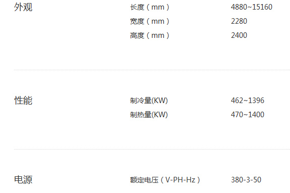 机组拥有宽广的温度运转范围,能在各种环境温度的变化下进行充分的制冷制热,满足全年的空调需求。
